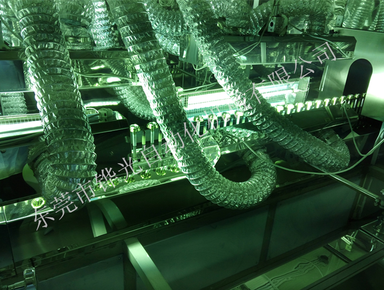 底涂噴完后,基材即進入烘道調溫至60-70℃,烘烤1-2分鐘,溶劑揮發達到90%,涂料樹脂產生交聯反應,漆膜硬化。