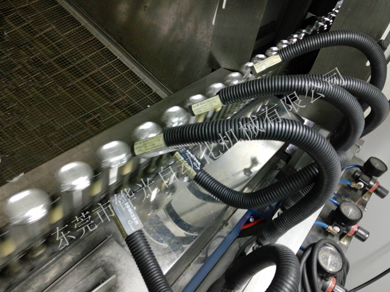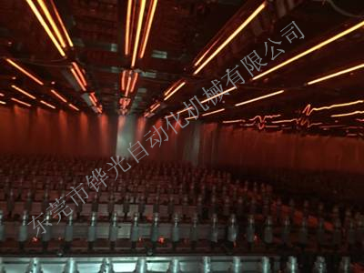 經過火焰處理的基材通過輸送傳動鏈進入噴房,噴房內的噴槍向其噴射涂料.同時基材受強制回轉系統的控制而產生自轉,使基材表面獲得均勻的涂層。